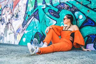Mezcla de tendencias de los últimos años con el Teide (volcán de la isla de Tenerife). Uniendo el mar de nubes con las gasas, las plantas con los flecos, la forma de las montañas con los volúmenes exagerados, la lava con los cortes rectos y largos y las rejillas como medio de desnudez usado por los guanches.